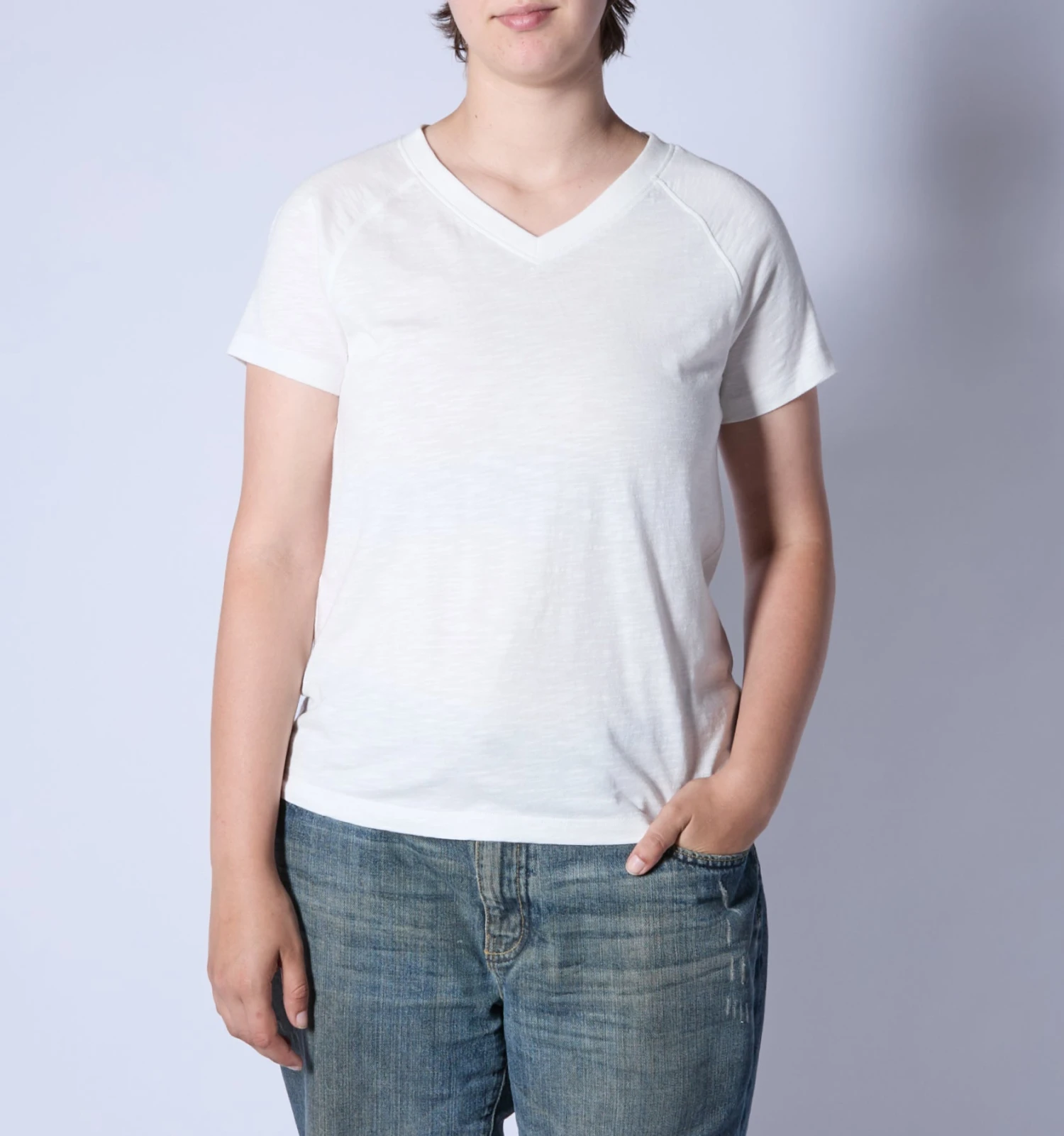 Short Sleeve Jersey Slub V Neck Tee – Natural(Short Sleeve Jersey Slub V Neck Tee Natural)